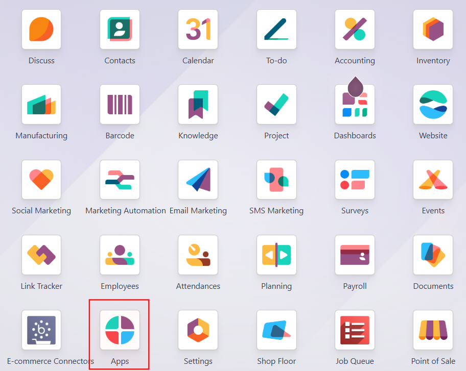 Để cài đặt module Odoo, bạn cần cài đặt ứng dụng Odoo trước rồi mới cài đặt từng module cụ thể trong hệ thống. Đối với các module tùy chỉnh, bạn cần tải lên tệp zip và thực hiện cài đặt trong mục ứng dụng của Odoo