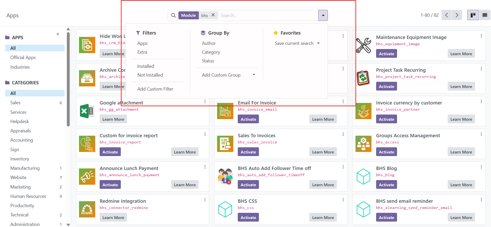 - Lựa chọn module: Xác định module tùy chỉnh cần thiết cho doanh nghiệp bạn (ví dụ: các tính năng nâng cao về HRM, Project, hoặc các tích hợp đặc thù).